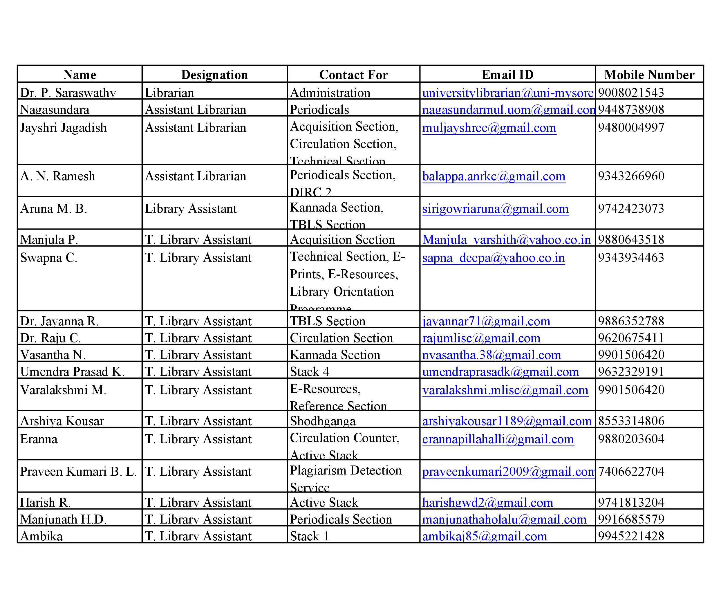 | Chairperson, DOS in L.I.Sc. MG, Mysore |